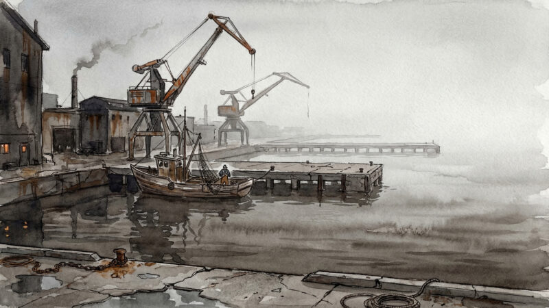 The old harbor, where the fog rolls in and the truth rolls out. Warehouses converted to unlicensed Havens. Bodies maintained on the cheap. The smell of salt water and something…