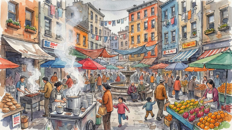 Eighty-five thousand people packed into streets that smell like cooking and sound like arguments and feel like the last place in Vesper where community isn’t a memory. Immigrant families. Market…
